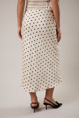 Polka Dot Mid Rise Maxi Skirt, Cream/Black Dot