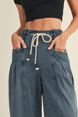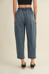 Raya Drawstring Barrel Leg Pants, Washed Denim