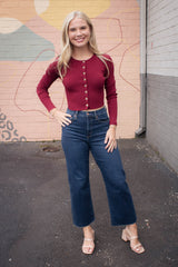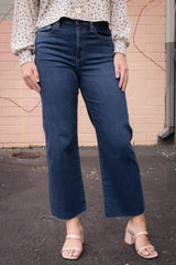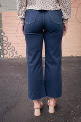 Step into effortless cool with these Pleaser High Rise Wide Ankle Jeans in Magic Hour. Featuring a flattering high rise and wide ankle cut, they offer a relaxed fit that’s perfect for showing off your favorite shoes. The frayed hem adds a touch of playful edge, while the dark wash denim keeps things versatile for day or night. Perfect for mixing and matching with your go-to tops and jackets!