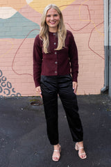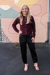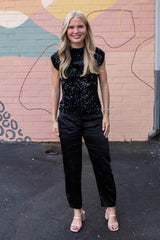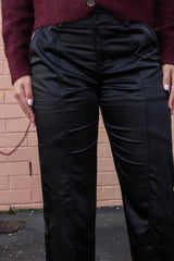 Slip into sleek style with the Sahara Satin Tapered Pant in classic black. Featuring a smooth satin finish and tapered legs, these pants bring a playful twist to any outfit. Practical side and back snap pockets keep your essentials close, while subtle seam details add a dash of flair. Finished with a secure hook and zipper closure, this pant is your new go-to for effortless chic anytime!