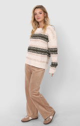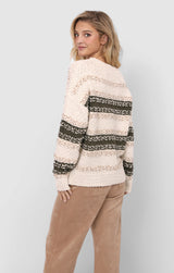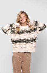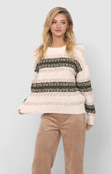 Bring a pop of personality to your cozy days with this striped sweater in dark olive green, cream, and taupe. Its textured fabric and classic crew neckline add charm, while long sleeves keep you comfortably warm. Perfect for layering or rocking solo, this playful piece makes loosening up your style effortless!