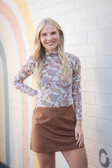 Elevate your style with the Lyric Floral Lace Top in Ivory Combo by Free People. This sheer beauty features delicate floral lace and mesh, long sleeves, and seam details that add texture and charm. The playful mock neck with a button back and a flirty keyhole opening create a chic, feminine silhouette perfect for any occasion!
