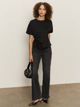 Elevate your basics with this playful short sleeve tee that blends the best of both worlds. Featuring a mix of soft knit and crisp woven fabrics in luxe satin, it's got serious style credentials. The charming knot detail at the front adds a cheeky twist that transforms an everyday essential into something unexpectedly fun. Perfect for dressing up or down, this Sanctuary piece proves that sometimes the simplest pieces make the biggest impact.