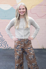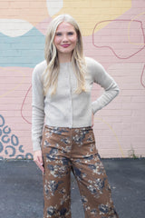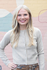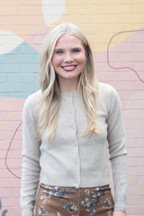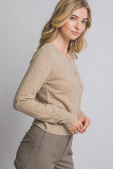 Cozy up in the Maria Round Neck Cardigan, featuring a button-front design that's perfect for layering. Its long sleeves and ribbed hem and cuffs add a snug, stylish touch, while the khaki hue brings effortless charm to any outfit. Easy to wear and easy to love!