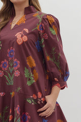 This plum mini dress features elegant 3/4 sleeves and a delicate floral print for a timeless look. The scallop hem adds a charming, feminine touch, while the fully lined design ensures comfort and coverage. Crafted from woven fabric with no stretch, it offers a semi-fitted silhouette that flatters your shape without clinging. Perfect for dressing up or down, this dress combines style and sophistication effortlessly.