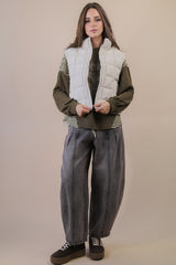 Stay warm and stylish with the Natasha Puffer Vest in Ecru. Featuring a quilted design and convenient zip-up closure, this vest offers a relaxed fit with a flattering split hem for added movement. Crafted from silky, non-stretch fabric, it provides comfort without compromising on shape. Perfect for layering, this vest combines softness and functionality to elevate any outfit effortlessly.