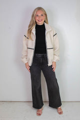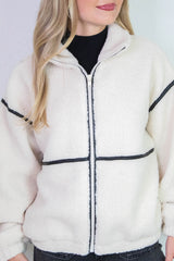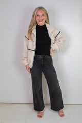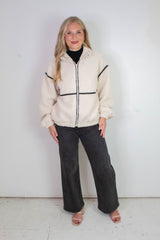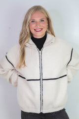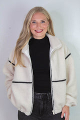 Cozy meets cool in the Hannah Sherpa Jacket in Cream! With soft sherpa lining and playful long balloon sleeves, this jacket wraps you in warmth and style. The chic mock neck and faux leather trim add a trendy edge, while side pockets and a zip-up closure keep things practical and snug. Perfect for crisp days when you want to feel comfy without sacrificing flair!