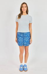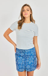 Memento Stripe Tee, Ivory Blue | Sadie & Sage