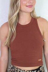 Mia High Neck Tank Bra, Wine | Cream Yoga