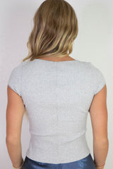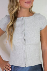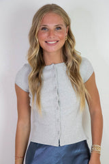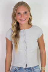 This playful cardigan features a charming button front and a flattering boat neck that adds a touch of elegance. Short cap sleeves and scalloped lace trim bring a delicate, feminine vibe, while seam details enhance its shape. Crafted from soft ribbed knit fabric, it’s perfect for layering with a fun, flirty twist!
