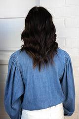 Nola Tie Front Volume Blouse, Blue Slate | Sanctuary