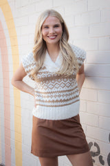 Elevate your layering game with the Paulie Collared Sweater Vest by Steve Madden. Featuring a playful V-neck and sleeveless design, this patterned vest brings a fun twist to classic style. The ribbed hem and collar add a cozy touch while keeping your look sharp and ready to mix and match. Perfect for adding a splash of personality to any outfit!