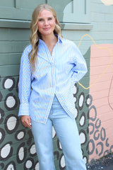 Sabine Tailored Stripe Shirt, Oxford Stripe Blue | Free People