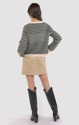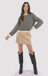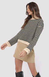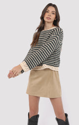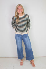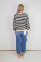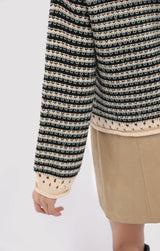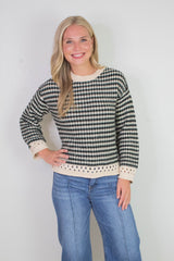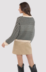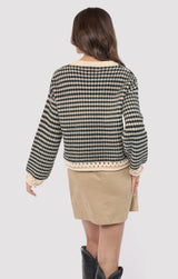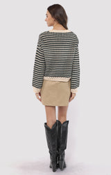 Samantha Contrast Trim Sweater, Black Multi | Sadie & Sage