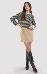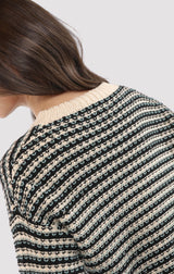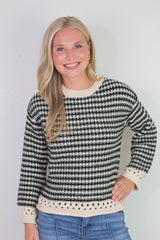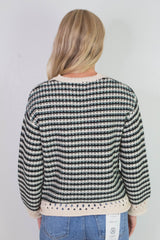 Bring a pop of fun to your wardrobe with the Samantha Contrast Trim Sweater. Featuring playful stripes and eyelet details at the hem, this cozy piece combines comfort with charm. The long sleeves and round neck make it perfect for layering or solo styling, while the bold contrast trim adds a fresh, lively touch. Get ready to turn heads in black multi!