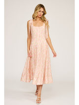 Embrace effortless elegance with the Skyla Midi Dress, a romantic piece featuring a soft pink floral print and charming tie sleeves. The midi length and tiered silhouette create flattering movement, while the delicate tie-sleeve detail adds a playful, feminine touch. Perfect for summer gatherings, garden parties, or any occasion that calls for understated sophistication. The floral design brings a fresh, romantic palette that complements all skin tones. Slip it on for an instantly polished look that transitions seamlessly from day to evening.