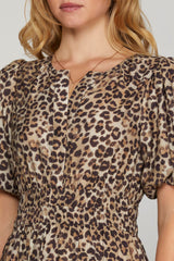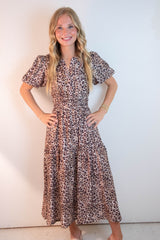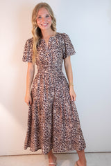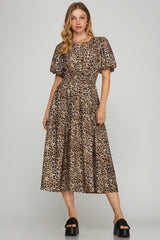 Introducing your new go-to dress for any occasion! The Destiny Split Neck Printed Dress features a flattering split v-neck design, playful puff short sleeves, and a flattering midi length. With a trendy leopard print and an elastic waist for added comfort, this dress also has convenient side pockets. Perfect for adding a touch of fun and style to your wardrobe!