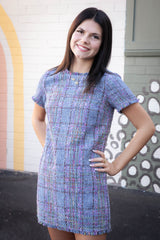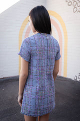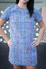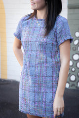 Ria Tweed Dress, Blue Multi | Steve Madden