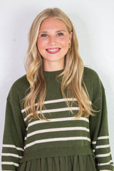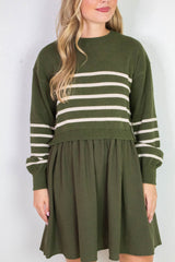 Holland Striped Mix Media Dress, Olive-Cream Stripe
