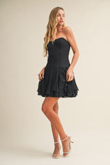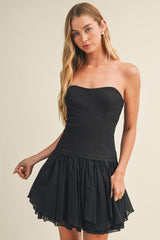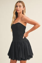 The Norah Bandeau Dress is your new go-to for effortless style. This sleek black dress features a chic bandeau neckline and an asymmetrical hem that adds just the right amount of edge. Perfect for dressing up or down, it's the kind of piece that works as hard as you do—whether you're heading to brunch or a night out. Simple, sophisticated, and undeniably cool.