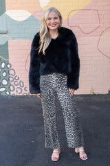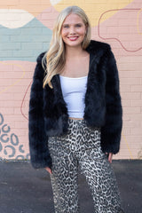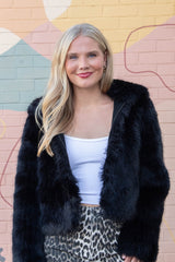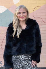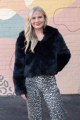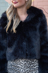 Get cozy and turn heads with the Louder Please Fur Jacket in bold black. This playful puffy jacket boasts a soft faux fur exterior, a snug hood, and a handy front zipper for easy wear. Stash your essentials or warm your hands in the side pockets while embracing cozy vibes all day long. Perfect for adding a statement to any chilly day outfit!