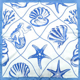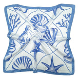 Mermaid Seashell Starfish Square Satin Bandana Scarf, Blue