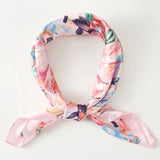 Vibrant Floral Square Silky Satin Bandana Scarf, Peach