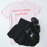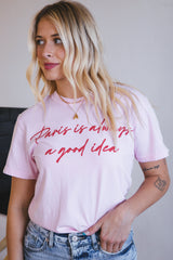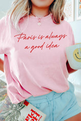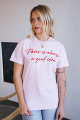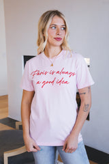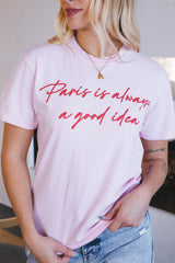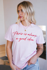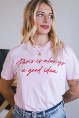 Stay stylish and playful in our Paris is Always a Good Idea Graphic Tee. With its crew neckline and unique graphic design, you'll feel confident and chic while wearing this tee. A perfect addition to your wardrobe for any casual occasion.