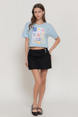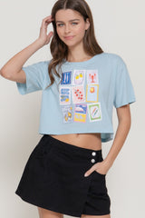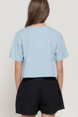 Rock a laid-back vibe with this Summer Graphic Tee in soft pastel blue. The cropped silhouette and short sleeves make it perfect for warm-weather days, while the eye-catching graphic adds personality to your casual rotation. Pair it with your favorite high-waisted bottoms for an effortlessly cool look that works from brunch to sunset hangouts.