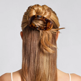 This Large Recycled Plastic Flat Cloud Clip in tortoise from Kitsch is your new go-to for effortless style. Its flat, fuss-free design rests comfortably at the back of your head—ideal for driving, relaxing, or striking a yoga pose. Secure your strands in a half-up or full updo with ease, thanks to its petite size. Use one for a subtle touch or stack two for playful, versatile looks that keep your hair happy and stylish!