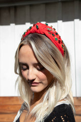 Add some sparkle to your hair with our Merry Rhinestone Studded Headband! Featuring rhinestone and metal studs, this knotted headband is the perfect accessory for a playful and stylish look. Make a statement this holiday season!