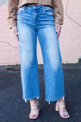 Step out in style with the Charlotte High Rise Lightly Distressed Jeans! Featuring a flattering high-rise fit, playful cropped length, and wide legs that flow with every move, these jeans bring effortless cool to your wardrobe. The gentle distressing adds just the right touch of edge without going overboard. Perfect for mixing and matching, they’re your new go-to for days when comfort meets standout style!