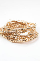 Add a splash of sparkle to your wrist with the Adley Beaded Stretch Bracelets! This playful set of 7 gold-toned bracelets stretches comfortably to fit any wrist and is water resistant, so you can keep shining rain or shine. Mix, match, and stack them for a fun, effortless style that brightens any outfit!