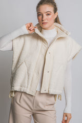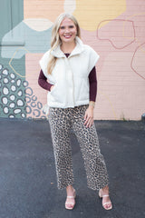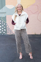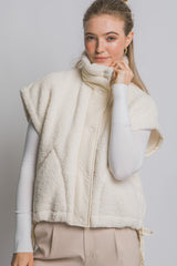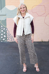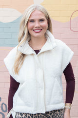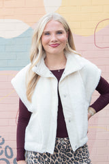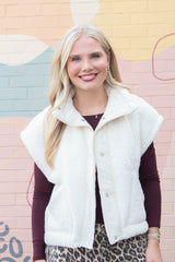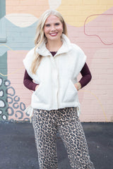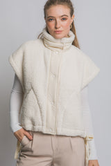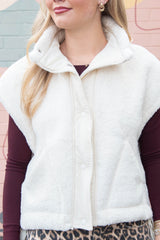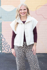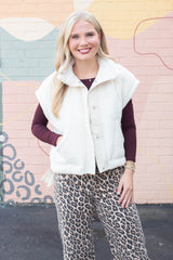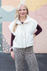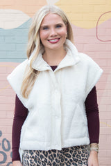 Stay cozy and stylish with the Addison Button Front Faux Fur Vest in ivory. Featuring a snug mock neck and playful side ties, this vest adds a fun twist to your layering game. Plus, side pockets offer a handy spot to tuck your hands or small essentials. Embrace warmth without sacrificing flair in this irresistibly soft, button-front favorite!