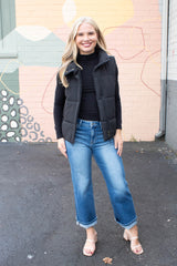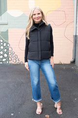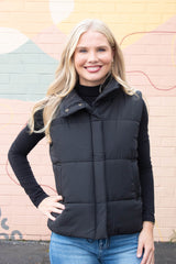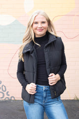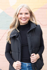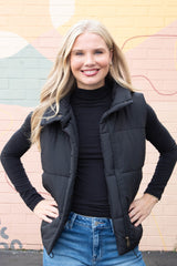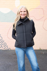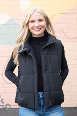 Liv Solid Zip Up Puffer Vest, Black