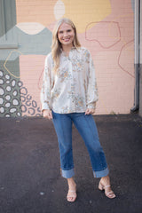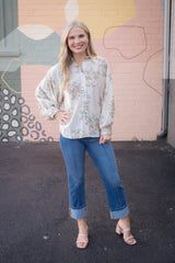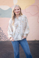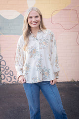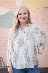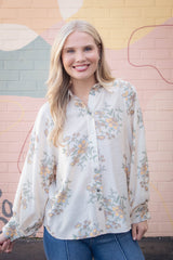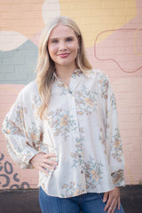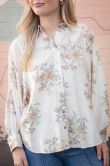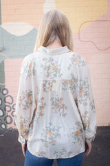 Lucy Button Down Floral Top, Ecru