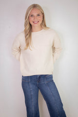 Wrap yourself in cozy charm with the Noa Front Seam Detail Sweater in Ivory. Featuring long sleeves and a classic crew neckline, this sweater adds a touch of whimsy with its unique front seam detail. Perfect for layering or wearing solo, it’s your new go-to for effortless comfort and style!