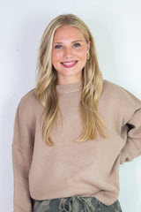 Cozy up in the Abby Drop Sleeve Oversized Sweater, where comfort meets cool. Its relaxed fit and oversized silhouette make it perfect for lounging or layering, while the playful drop long sleeves add a fun twist. The classic crew neckline keeps it casual, and subtle seam details give it a stylish edge. In a versatile dark taupe, this sweater is ready to become your new favorite go-to for easy, laid-back days!