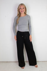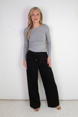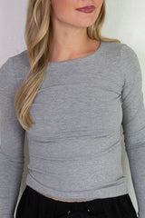 Stay cozy and chic in the Elowyn Double Layer Rib Knit Tee. Featuring playful long sleeves and a flattering boat neck, this heather grey tee adds a touch of fun to your everyday look. The double-layered rib knit fabric keeps you comfy and stylish, perfect for layering or wearing solo on cooler days!