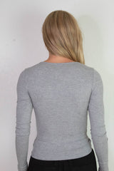 Elowyn Double Layer Rib Knit Tee, Heather Grey