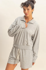 The Avery Quarter Zip is your new go-to layer for those days when you want comfort without the fuss. This heather grey long sleeve features a classic quarter zip design that lets you control your warmth, plus eye-catching seam details that elevate the whole look. Whether you're layering up for the office or keeping it casual on the weekend, this versatile piece works harder than it looks. Cozy, stylish, and ready for anything.