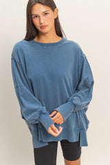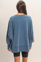 The Hannah Oversized Top is your new go-to for effortless style. Cut generously for that coveted relaxed fit, this navy long-sleeve features eye-catching seam details that add visual interest and dimension. Perfect for layering or wearing solo, it's the kind of piece that feels like a cozy hug while looking intentionally put-together. Dress it up or down—this versatile top does it all.