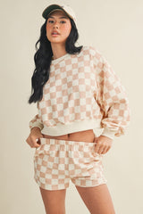 Effortless comfort meets timeless style with these checkered sweat shorts. Featuring a soft, breathable fabric and a convenient pull-on design, they're perfect for lounging, running errands, or casual weekend wear. The classic checkered print adds visual interest to any outfit, while the relaxed fit ensures all-day comfort. A wardrobe essential that transitions seamlessly from day to night.