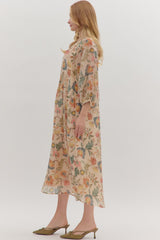 Elevate your everyday style with the Kendra Midi Dress in Ecru—a charming piece that brings botanical beauty to your wardrobe. This midi-length dress features a graceful button split neck and is lined for comfort and confidence. The delicate botanical print adds a whimsical touch, while long sleeves offer versatile coverage perfect for any season. Whether you're heading to brunch or a casual gathering, this dress effortlessly transitions from day to night with its timeless appeal.
