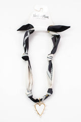 Wrap yourself in charm with the Mavis Pearlized Heart Scarf Necklace. This playful accessory features a soft grey and white satin scarf elegantly knotted and accented with gleaming gold hardware. The pearlized heart charm adds a whimsical touch, making it perfect for brightening up any outfit with a dash of fun and sophistication!