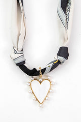 Mavis Pearlized Heart Scarf Necklace, Grey/White