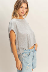 Slip into effortless style with the Ayla Open Back Tee. This playful short-sleeve essential features a cheeky open back design that's perfect for showing off your vibe—whether you're heading to brunch, the gym, or a casual night out. The soft heather grey keeps things cool and versatile, pairing seamlessly with everything in your closet. Comfort meets attitude in one seriously fun tee.
