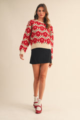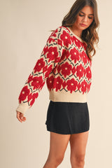 Ella Textured Floral Sweater, Red Flower
