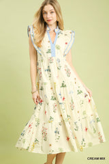 Twirl into spring with our Fanny Floral Midi Dress, a cheerful cream mix design that's equal parts romantic and fun. Delicate florals dance across tiered layers that add movement and dimension, while crisp contrast trim frames the neckline and hem for a polished finish. Perfect for garden parties, weekend brunches, or whenever you want to feel effortlessly put-together. This midi length hits just right—flowy enough to move in, structured enough to feel intentional.