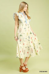 Fanny Floral Midi Dress, Cream Mix